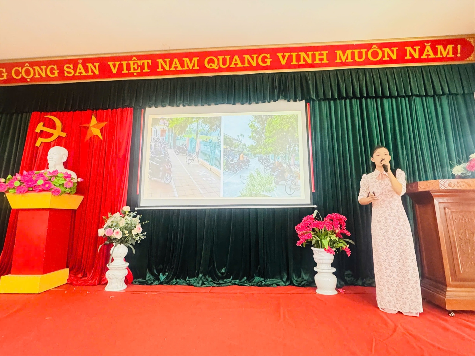 Sau đây là một số hình ảnh giáo viên tham gia phần thi báo cáo biện pháp.